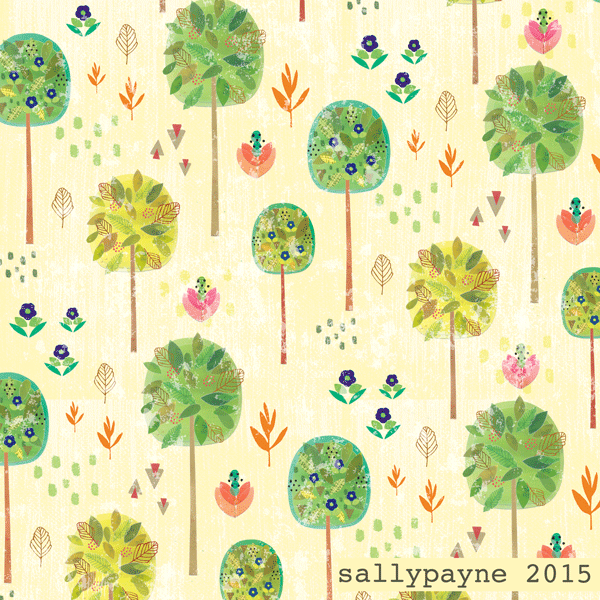 Whenever I draw something i see the elements working in a pattern then feel a need to make one, so using the trees from yesterdays post I created this - I think could make nice children's wallpaper? If I had a big printing factory (which I don't - just a standard inkjet printer!) then I would print my patterns on wallpaper, fabric etc etc